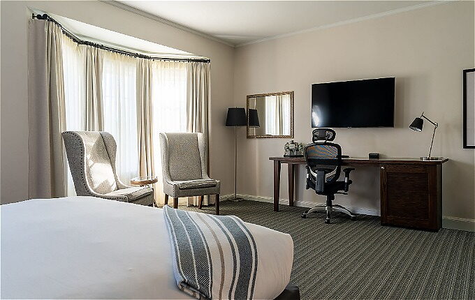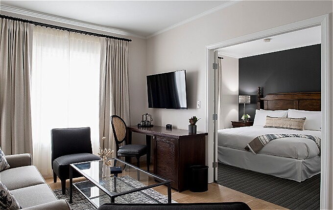 A little more room for a lot more fun – This spacious East Wing suite feature a king bedroom with separate living space divided by French doors for added privacy.