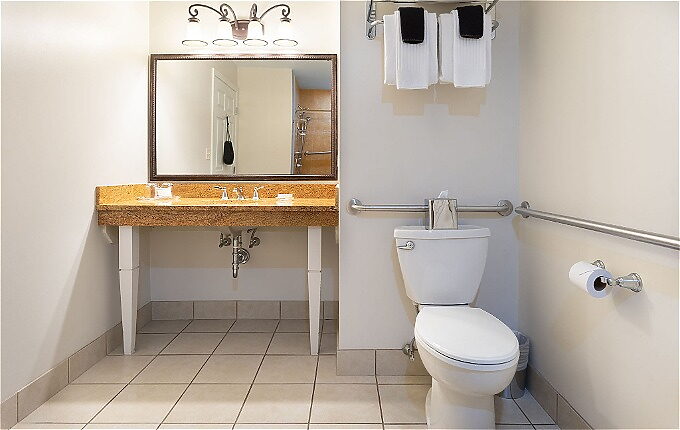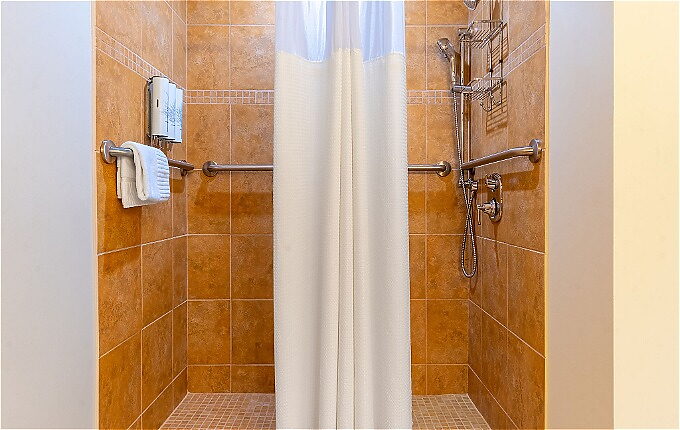 Located in the East Wing, this spacious ADA room can accommodate a wheelchair, roll-in shower, and features comfortable seating. Vintage furniture meets contemporary comforts with Cuddledown Duvets, feather pillows, plush robes, and custom-made king Serta Mattress.