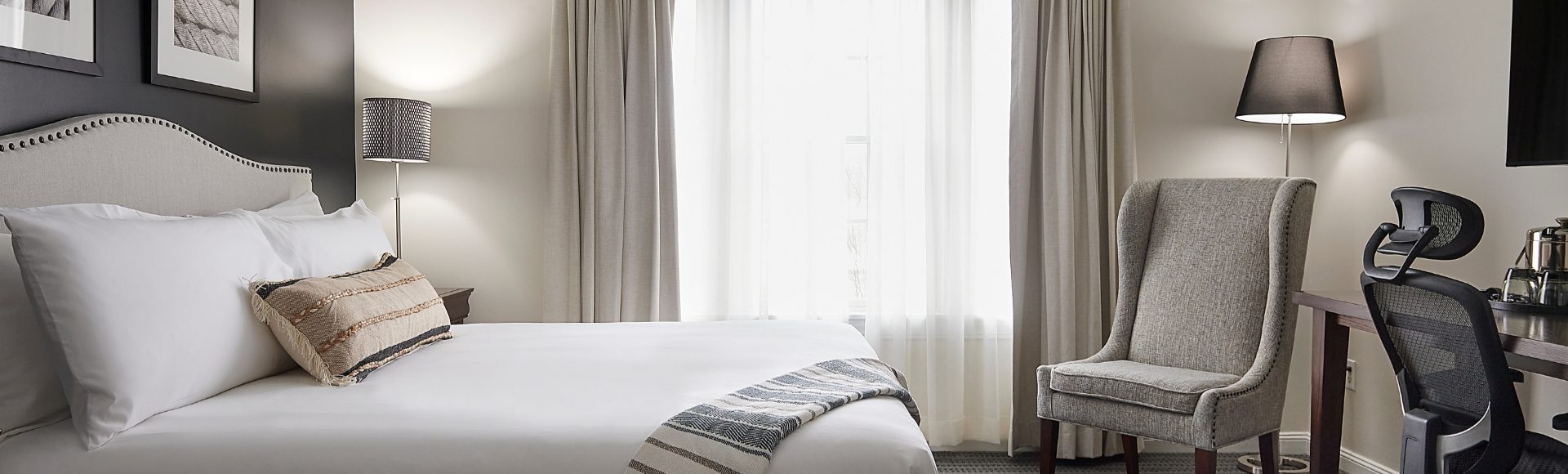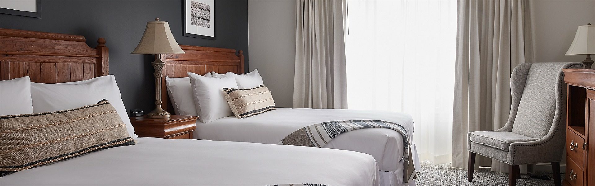 Maritime-inspired hues pay homage to the coastal location and seafaring past in this room featuring two queen beds, each with custom-made Serta Mattress, Cuddledown duvets, and plush feather pillows.