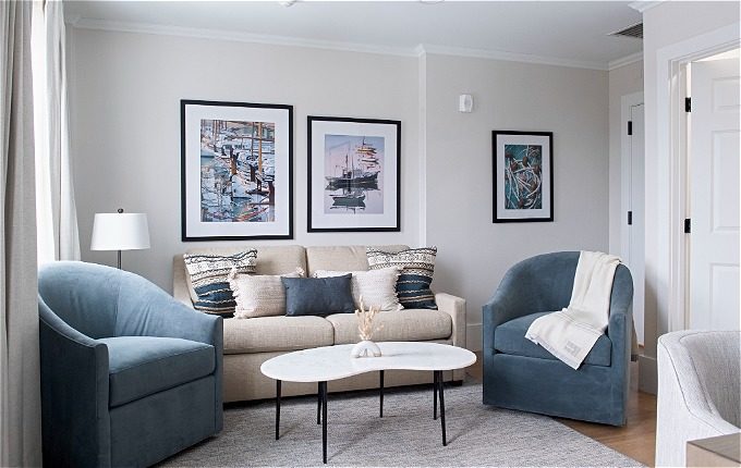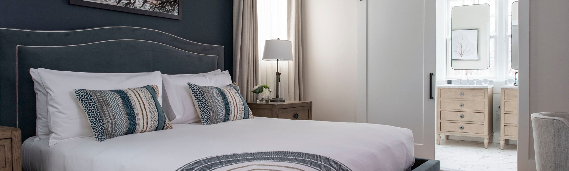 Located in the Federal House, this spacious suite features a bedroom with custom-made king Serta Mattress, large bathroom, and separate living space. (no elevator access)