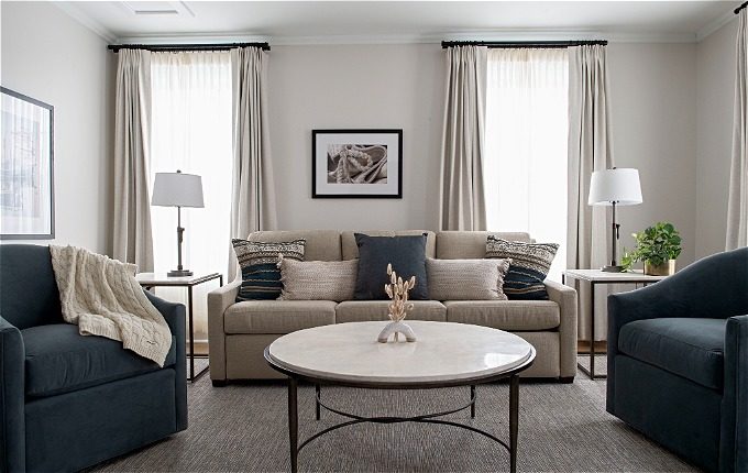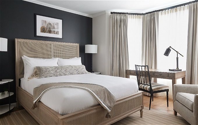 This impressive suite features intricate old-world details thoughtfully preserved and complemented by upscale, contemporary furnishings. Enjoy a bedroom with custom-made king Serta mattress, a spacious bathroom, and separate living space. (no elevator access)